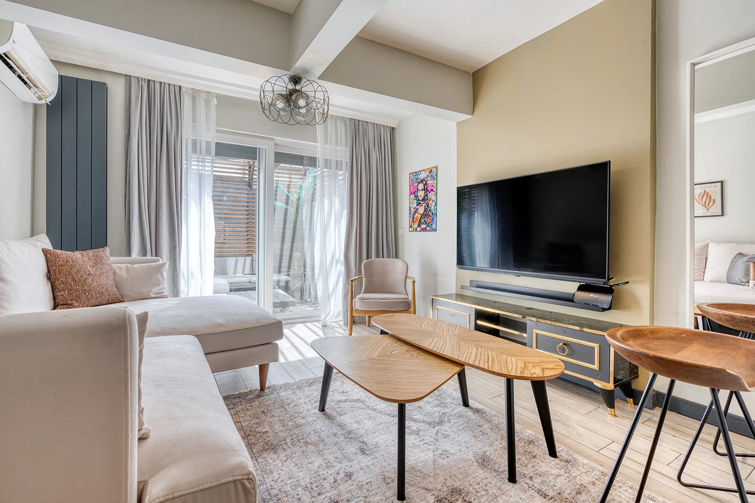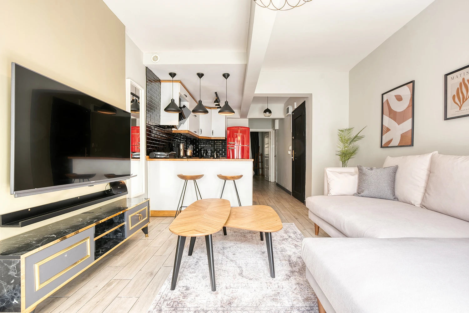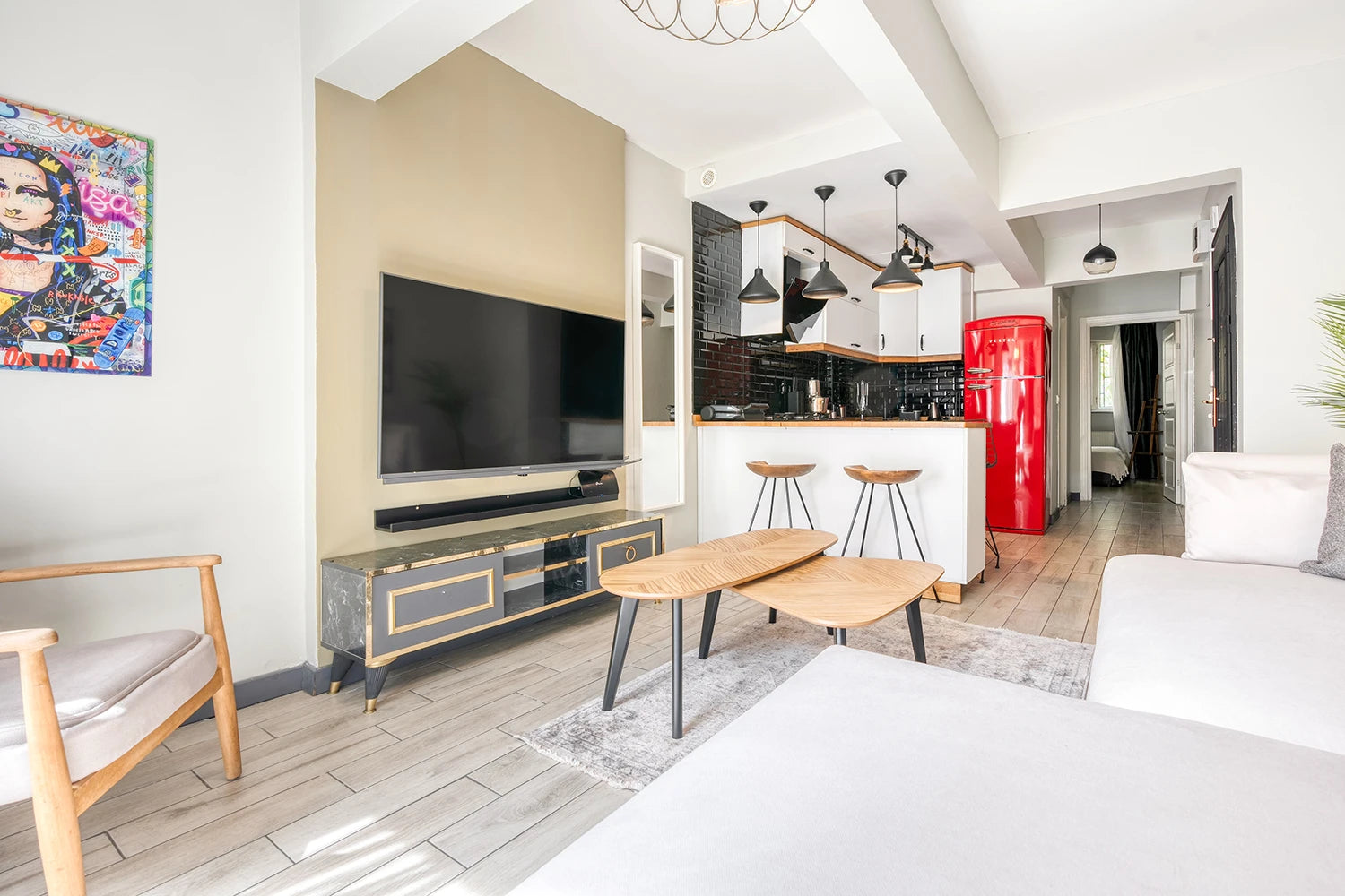 Modern tarzda dekore edilmiş, eşyalı, Tam donanımlı modern mutfak, Yüksek kaliteli uyku & tekstil ürünleri, Geniş ekran Smart TV, Fiber internet